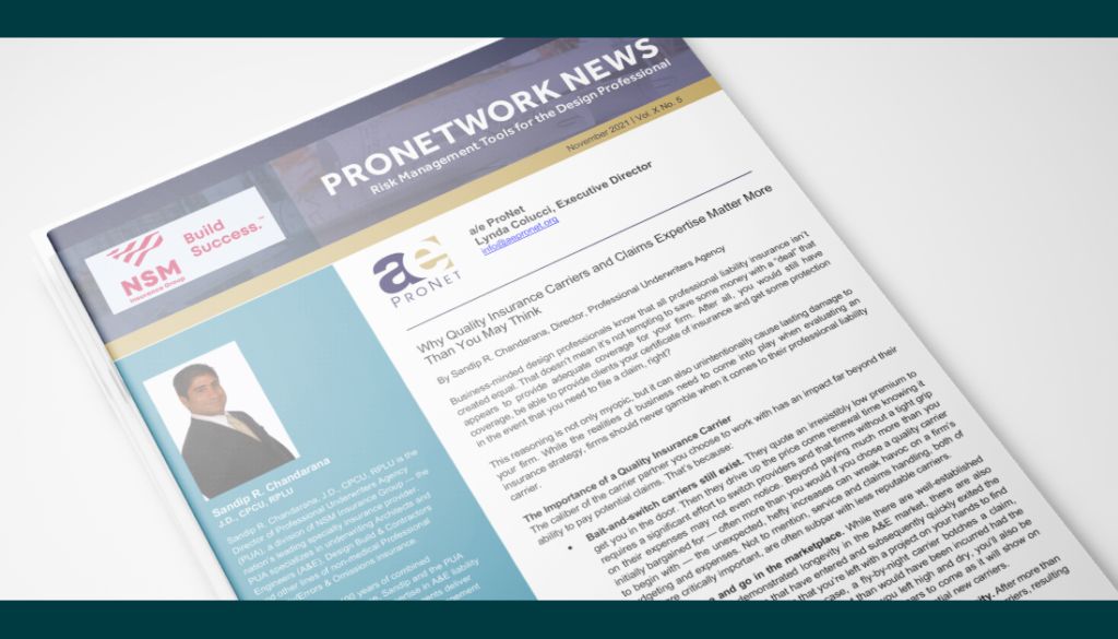 Professional Underwriters Agency (PUA) Program Director, Sandip Chandarana, recently penned an article for ProNetwork News — the bi-monthly newsletter of aeProNet — that provides key insights on why…